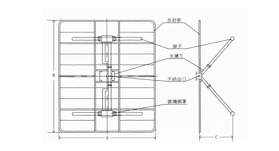 | 9 | 材料(Material) | ² 振子體:鋁合金管 /不銹鋼 ² 饋電部分:銅鍍銀 ² 反射板:不銹鋼 |