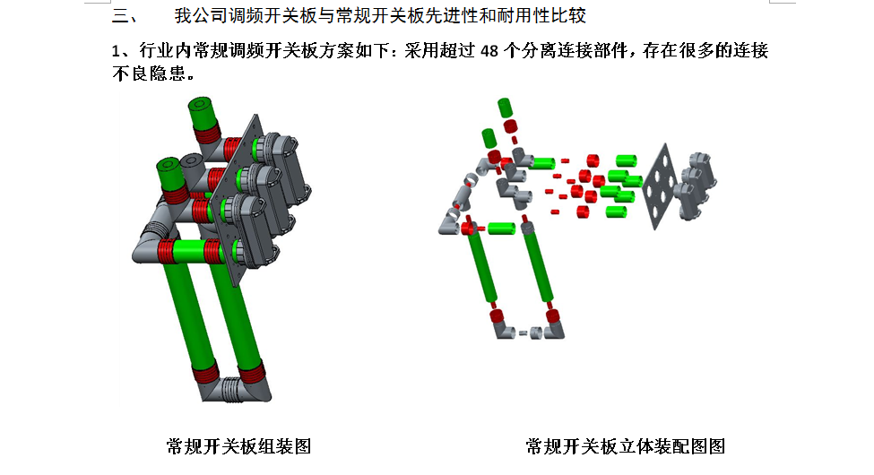 從上圖可以看出,常規(guī)開關(guān)板采用了48個組件連接而成,而我公司開關(guān)板采用一體化組件的設(shè)計,只用了18個組件連接而成,比常規(guī)的開關(guān)板減少了超過60%的連接組件的數(shù)量,大大提高了可靠性。總機電話: 0412-8232855